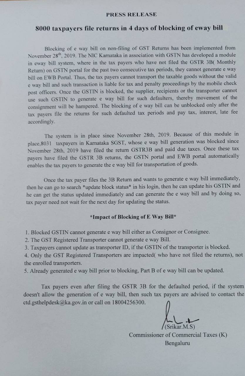 ಡಿಜಿಟಲ್ ಪಾವತಿ ಗೇಟ್ - ವೇ ಗಳ ಮೂಲಕ ವಹಿವಾಟು ನಡೆಸಿದ ವರ್ತಕರ ಬಗ್ಗೆ ಇಲಾಖಾ ವತಿಯಿಂದ ಪೂರಕ ಪತ್ರಿಕಾ ಪ್ರಕಟಣೆ. |